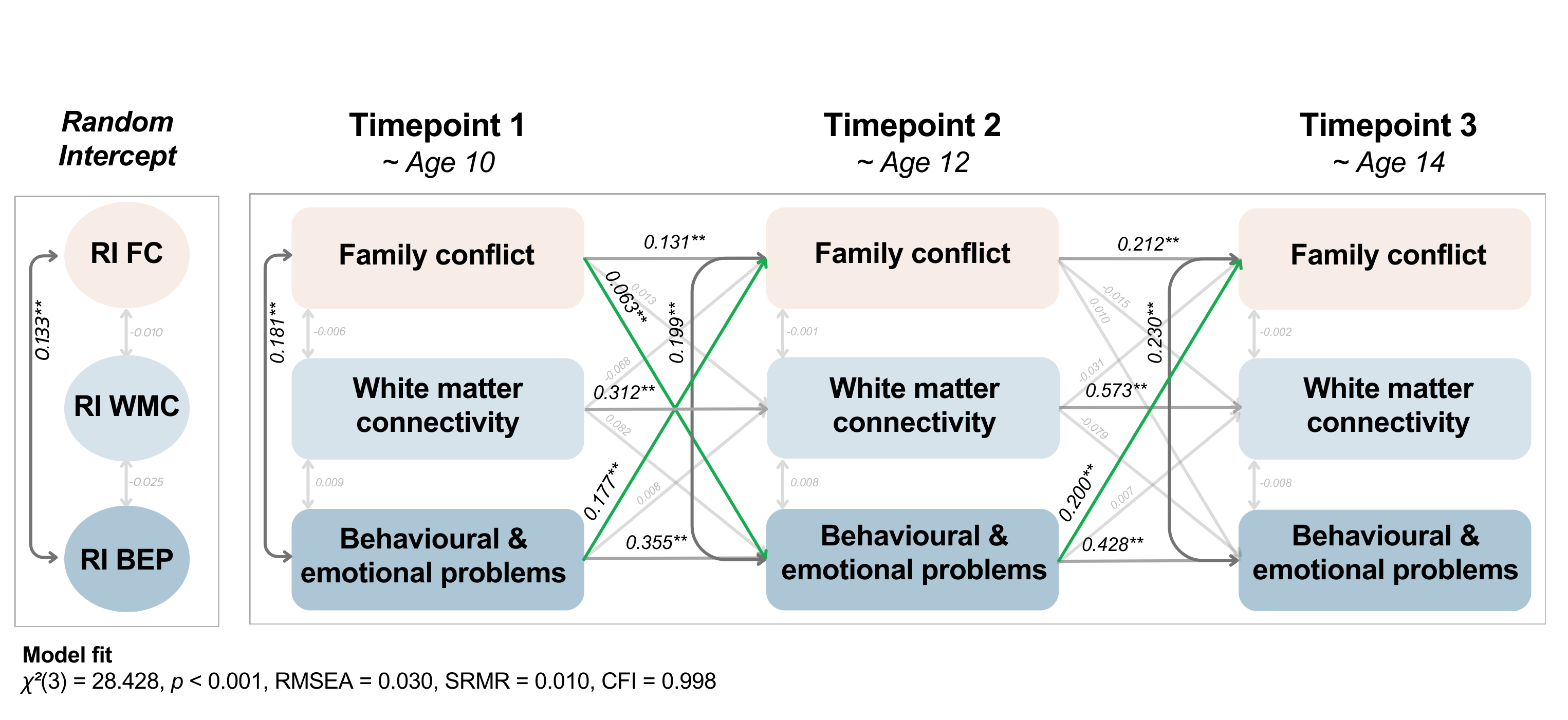 We will use a random intercept cross-lagged panel model (RI-CLPM) to investigate family relations and their relationship with youth behavioral and emotional problems & brain development, using the prospective, longitudinal Adolescent Brain Cognitive Development study (ABCD, N ≈ 12.000).